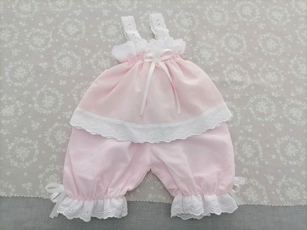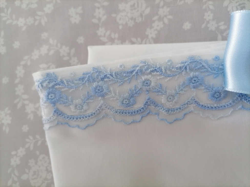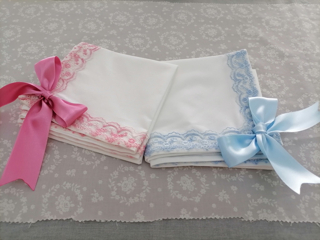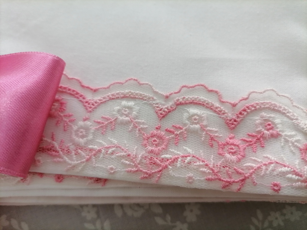 Πάνα από βαμβακερό ύφασμα με τούλινη δαντέλα σε ροζ και μπλε χρώμα και χρωματιστό φιογκάκι.
